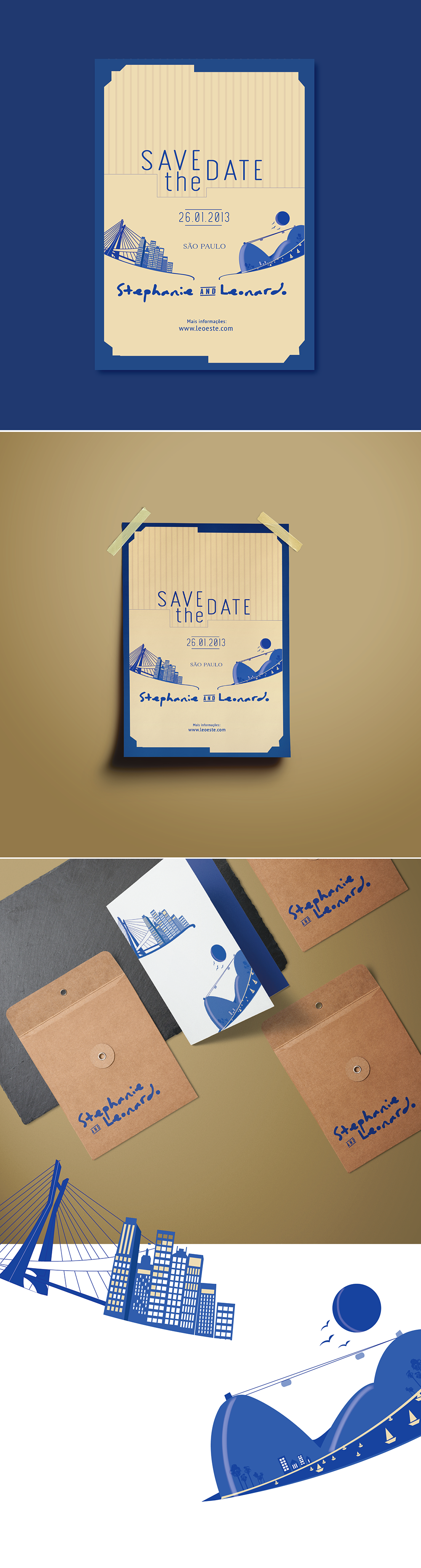 Desenvolvimento de arte com illustração personalizada para save the date de casamento.